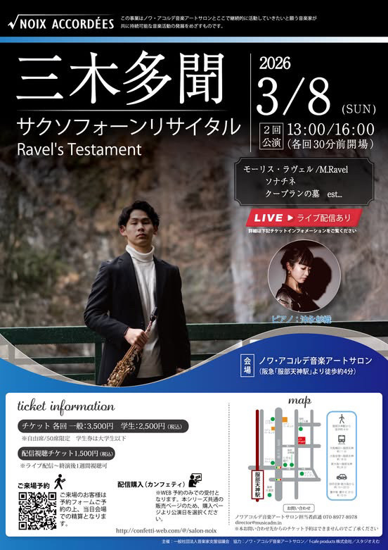 三木多聞サクソフォーンリサイタル「Ravel's Testament」
